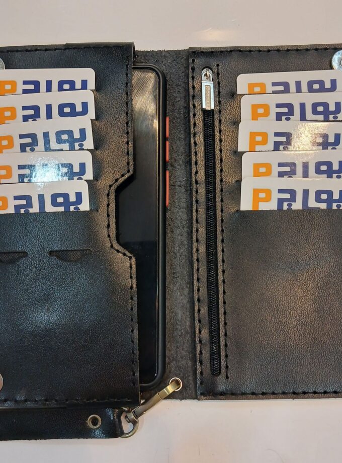 دارای جای مدارک . دسته چک .17 جای کارت .محفظه زیپ دار .